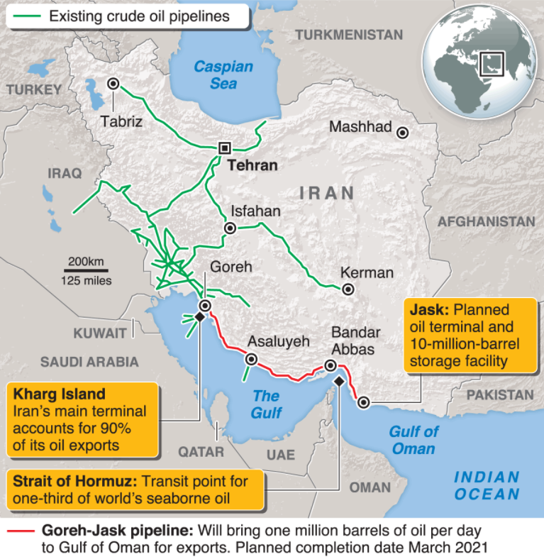 We need to be clear about what is at stake with Iran, though. Just to note, Uranium enrichment up to 20% is called ‘reactor grade’, which is what Iran has now, whereas anything over is called ‘weapons grade’ uranium. So, that further enrichment will be rolled out as Iran seeking the bomb, whereas in reality it is the Iranian version of emotional blackmail. More than one can play that game. The Iranians do not want the bomb. Such talk by them of increasing enrichment over 20% is their way of applying pressure. But there is a particular reason the US is keen to have Iran re-enter compliance with the JCPOA, yet the US insists, to its own detriment, that Iran re-enter compliance unilaterally prior to the US taking any action. That reason is because Iran is so quickly gaining its independence from the West and its own self-sufficiency. As an example, they will complete a project this year that will guarantee a means by which to bypass US sanctions and allow it to sell its oil to neighboring states unhindered, which will greatly enhance its financial position, in turn weakening the influence of the Saudis and other Gulf States via their control of oil pricing. That project is the Goreh-Jask pipeline, which completely bypasses the Strait of Hormuz and will supply oil and gas directly, without the need for shipping via bulk tankers through the Strait of Hormuz. That will be a big strategic blow to the Beltway and the Persian Gulf oil exporters, who rely on the Strait of Hormuz to ship their oil and to control Iran. In the event of an attack on Iran, that pipeline would enable Iran to shut off the Strait and still be able to ship its own oil. There are Iranian plans for other pipelines as well.